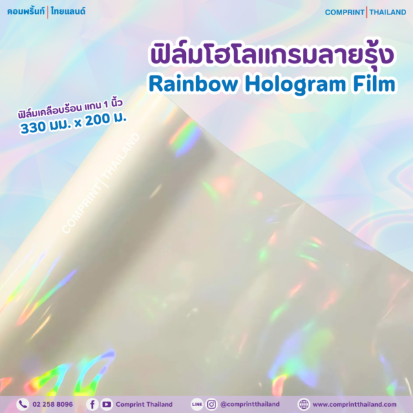 ลวดลายรุ้งเล่นแสงหลากสี สะท้อนแสงมุมมองต่าง ๆ ได้อย่างสวยงาม ช่วยให้งานพิมพ์ดูสะดุดตา มีมิติ และแตกต่างจากฟิล์มทั่วไปอย่างชัดเจน